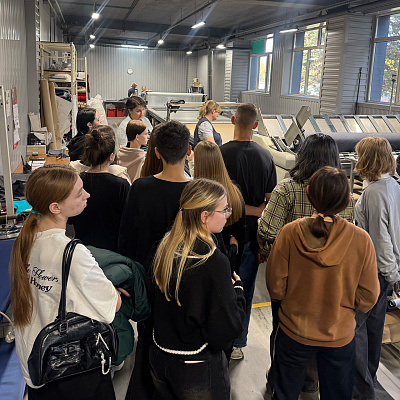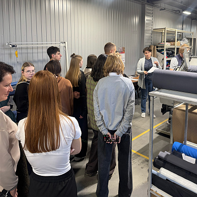 Спустя неделю будущие операторы швейного производства совершили ответный визит на нашу швейную фабрику: студенты посетили производственные цеха, пообщались с мастерами и технологами, увидели процесс подготовки к выпуску коллекций, заглянули в торговый зал и в офис компании.
