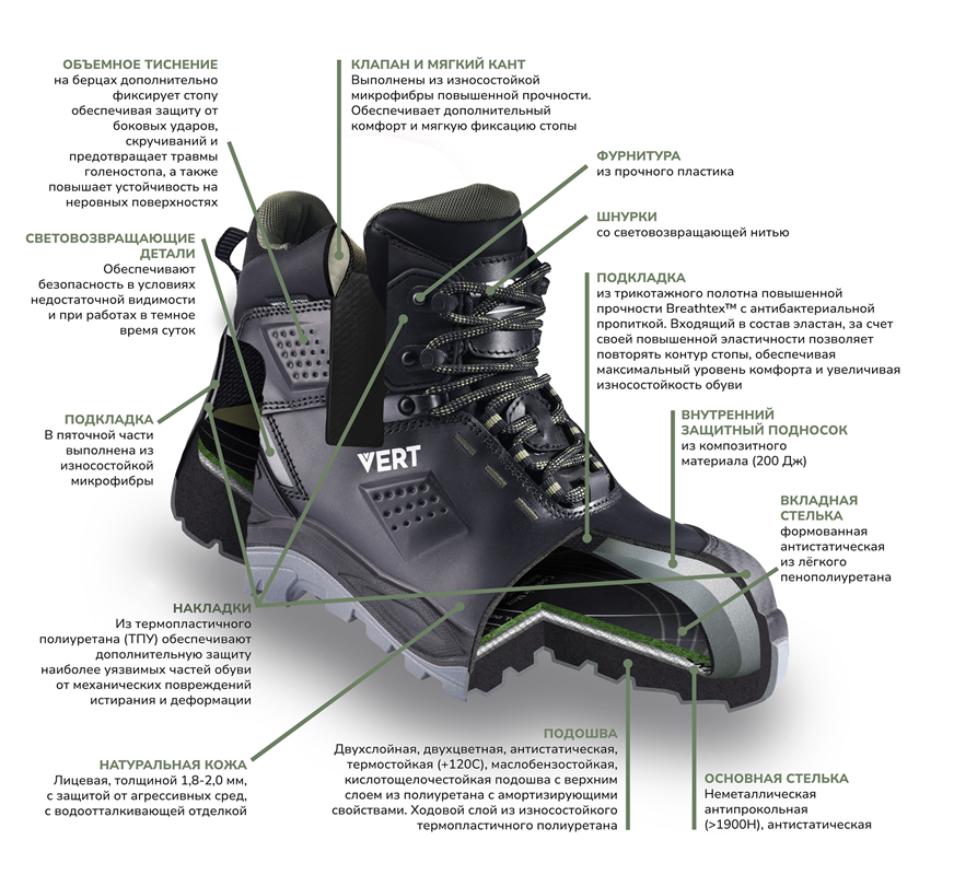 Обувь серии VERT 3000 — безупречное сочетание стиля, комфорта и современных технологий! Коллекция отличается стильным дизайном, использованием высококачественных современных материалов и уникальной колодкой повышенного комфорта. Анатомическая стелька помогает минимизировать утомляемость и обеспечивает отличную поддержку стопы даже при длительной носке. Обувь серии VERT 3000 гарантирует надежную защиту от агрессивных сред и механических воздействий, что делает ее идеальным выбором для работы в самых разных отраслях промышленности. Высокие стандарты качества и технологичные решения обеспечивают безопасность и комфорт в любых условиях. VERT — защита и стиль без компромиссов!
