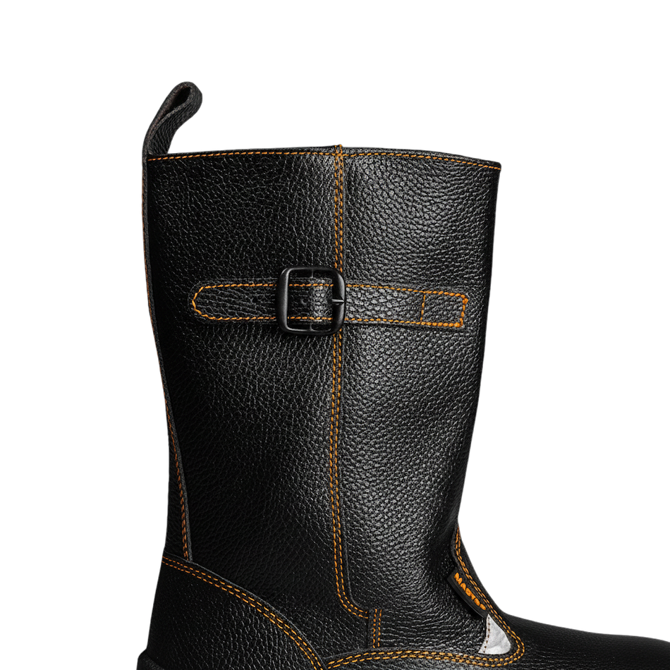 -Верх изготовлен из натуральной юфтевой кожи, что обеспечивает надежную защиту, комфорт и долговечность в сложных условиях труда.