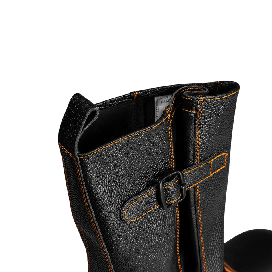 -Для удобства в эксплуатации на сапогах имеется задний наружный ремень с петлей-хлястиком из натуральной кожи.