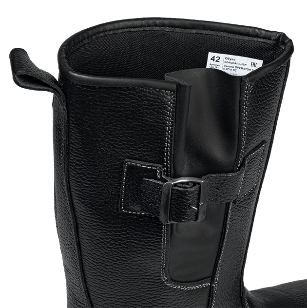 -Для удобства в эксплуатации на сапогах имеется задний наружный ремень с петлей-хлястиком из натуральной кожи.