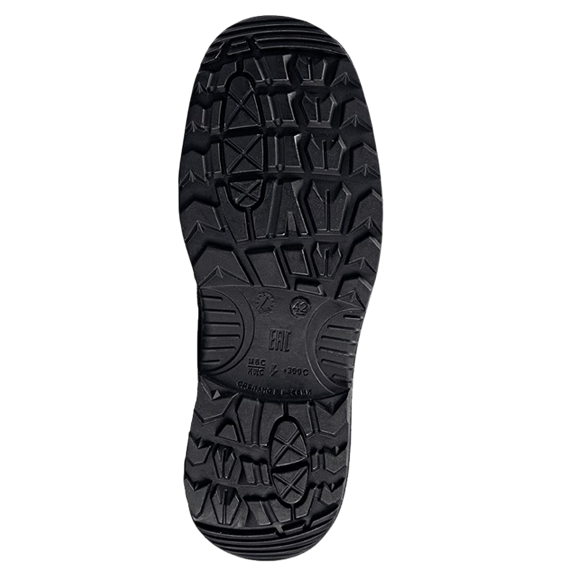 -Ходовой слой подошвы из износостойкой, термостойкой (до +300°С в течение 60 сек.), морозостойкой (-40 °С) нитрильной резины, стойкой к деформациям и истиранию.