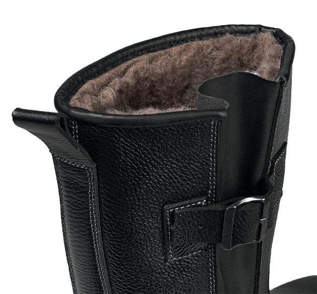 -Для удобства в эксплуатации на сапогах имеется задний наружный ремень с петлей-хлястиком из натуральной кожи.