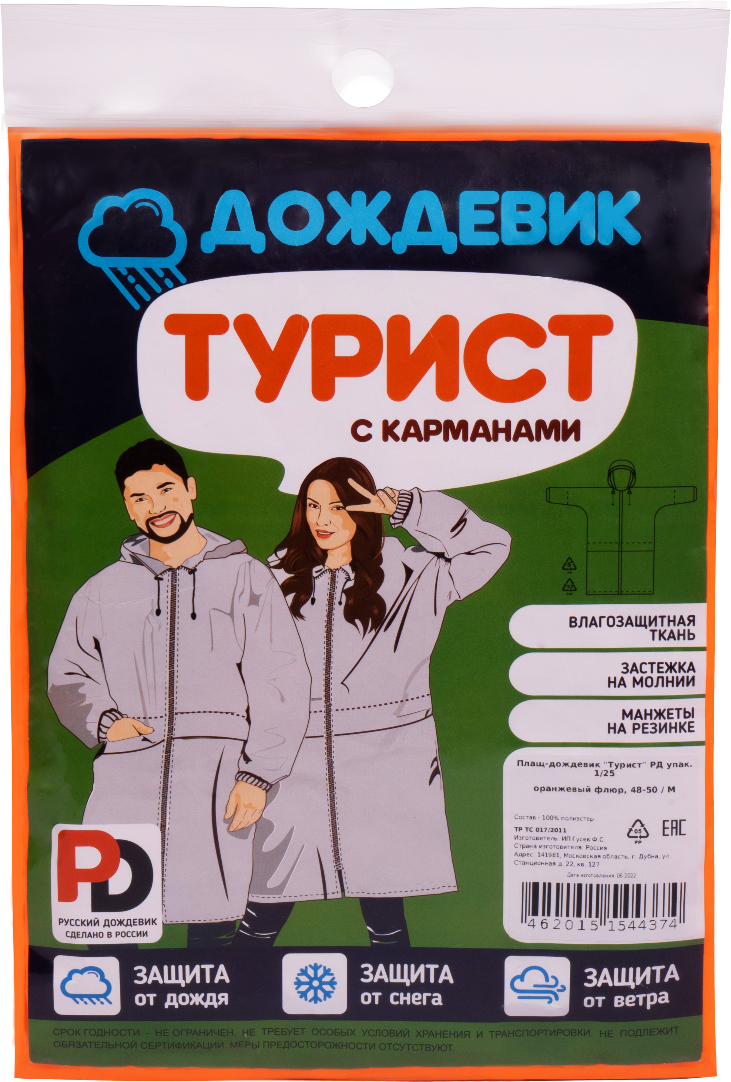Плащ ТУРИСТ оранжевый