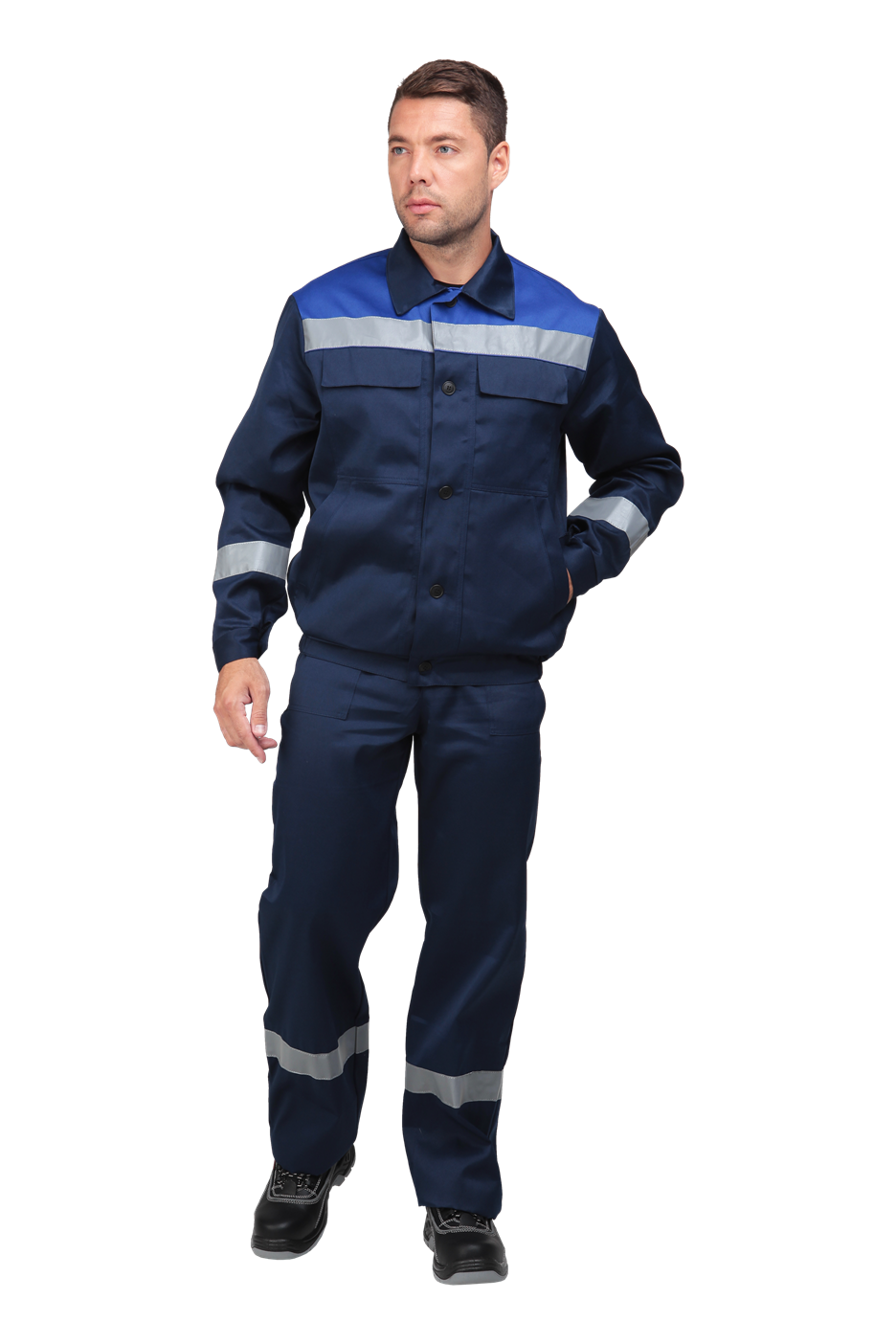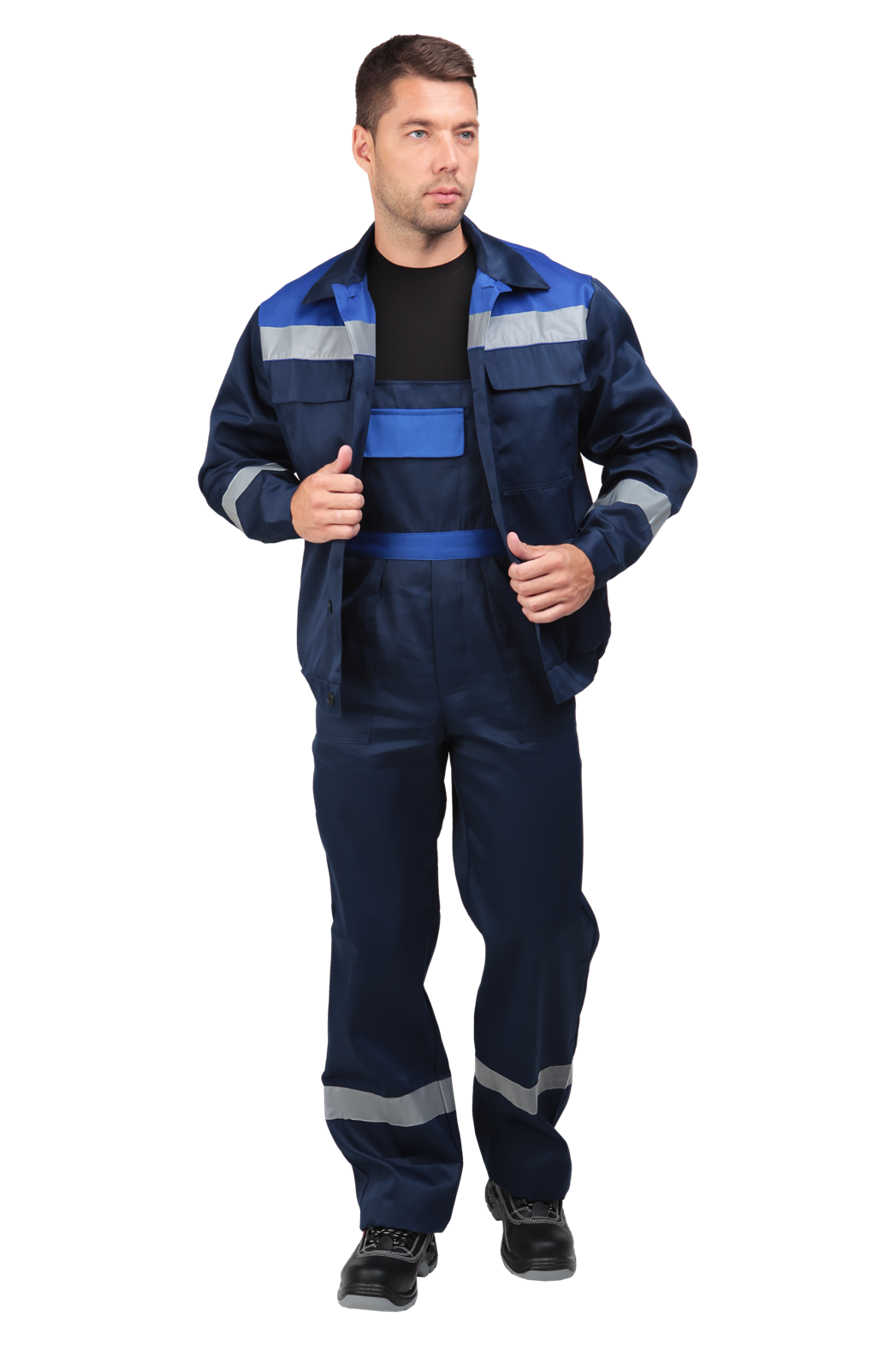 В костюме используется световозвращающая лента (СВП) 50 мм.