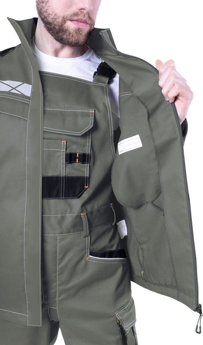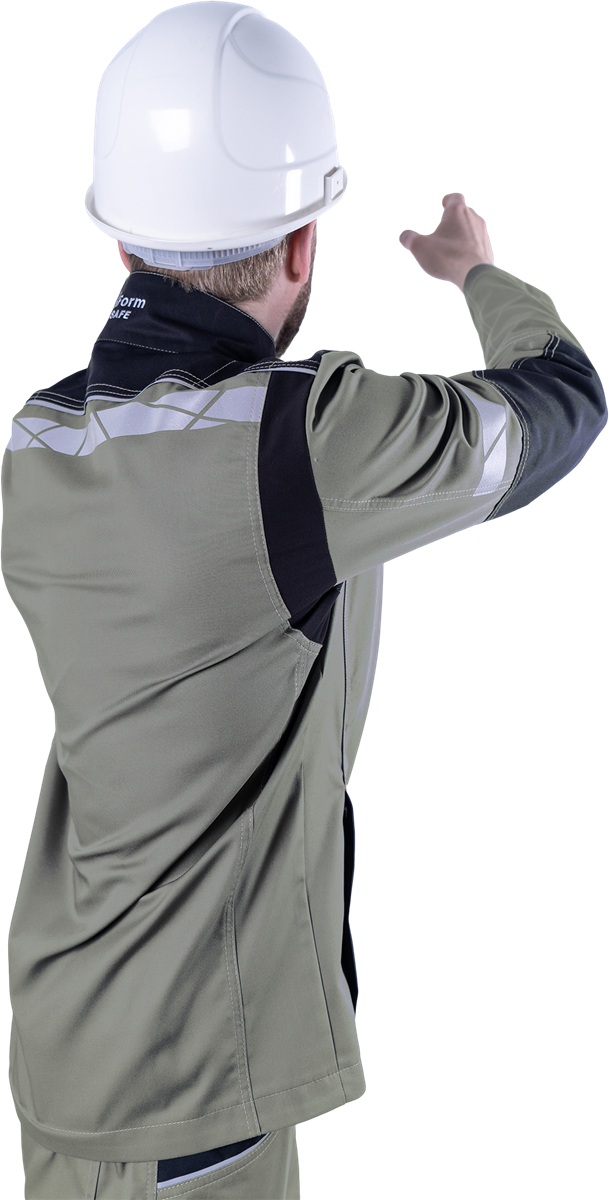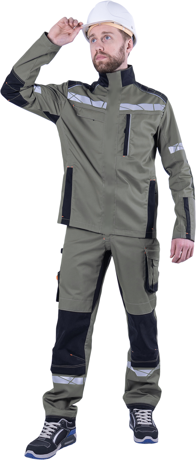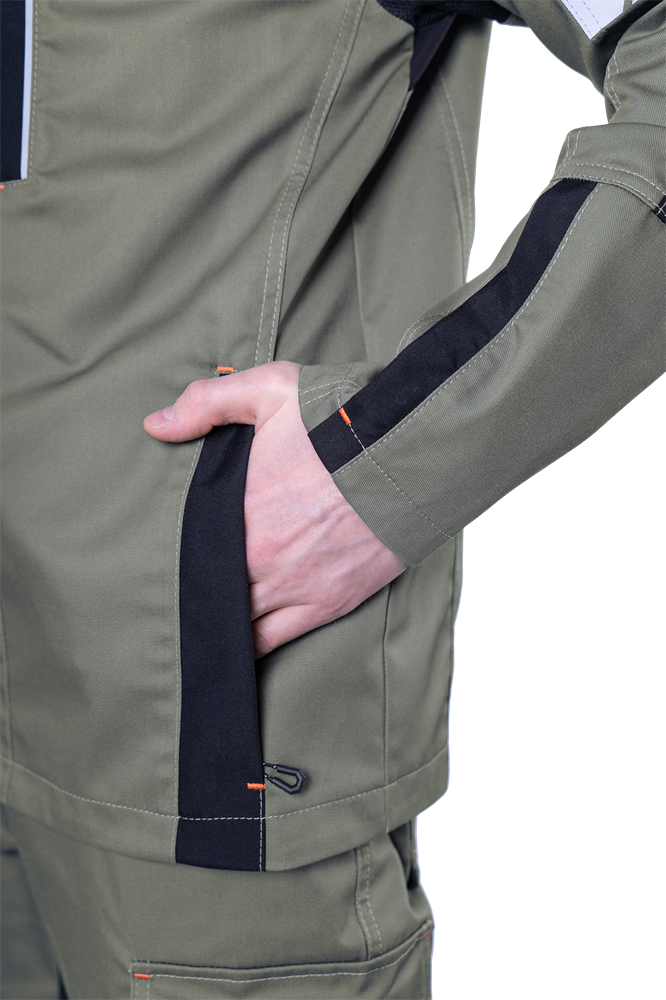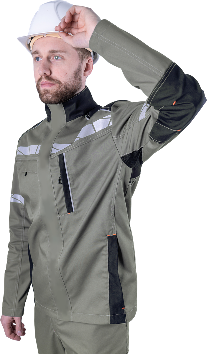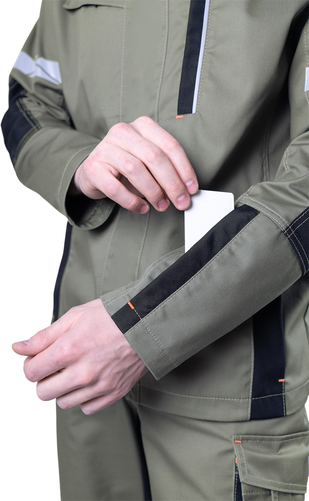• рукава, соответствующие естественному положению рук при работе, налокотники с вытачками из износостойкой ткани (100% полиамид 6.6)