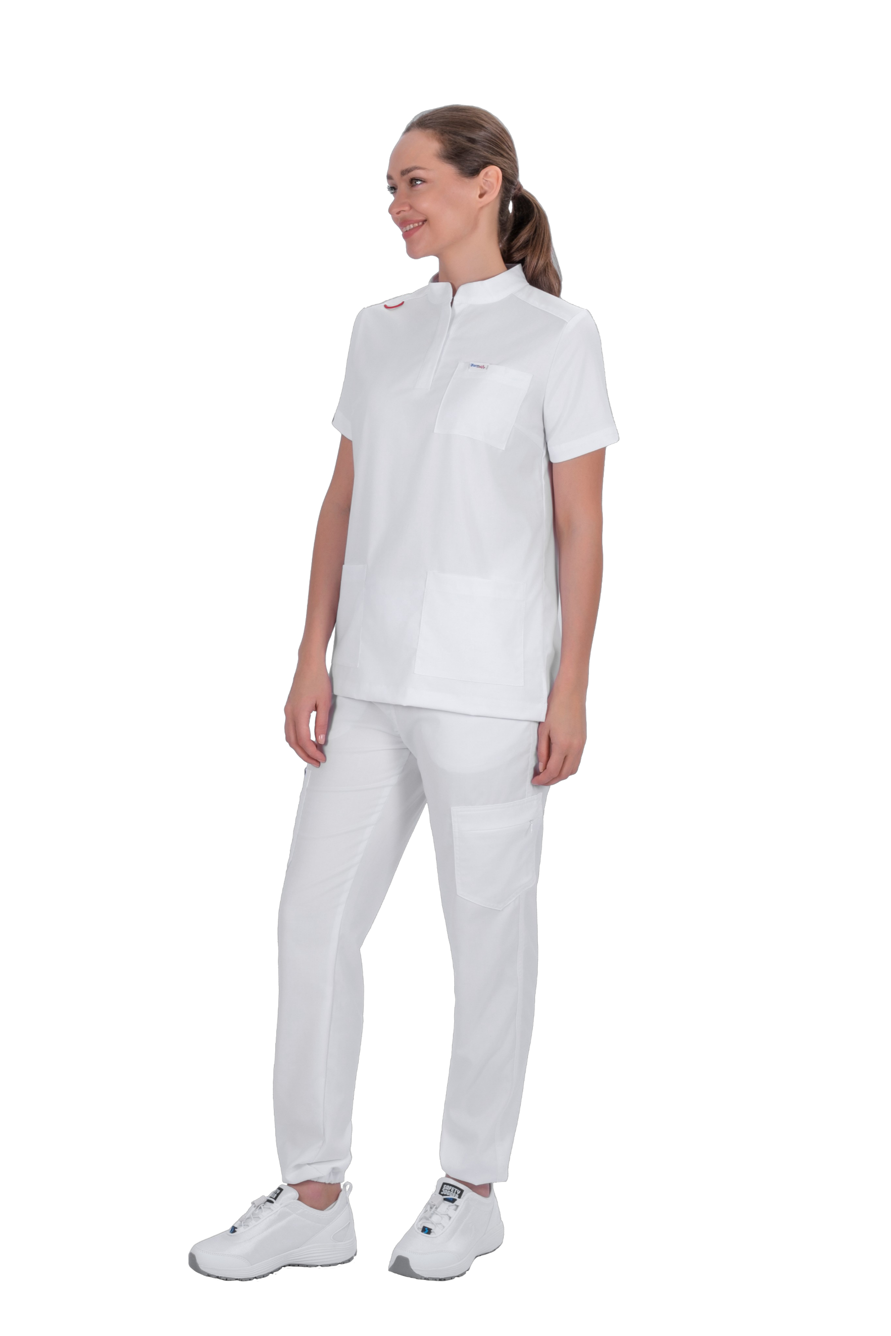 На уровне боковых швов расположены 3 накладных кармана: левый -накладной карман фигурной формы вход в карман с застежкой-молния, правый -большой накладной карман фигурной формы и малый накладной карман расположен под правым большим карманом, вход в карман разделенный на две секции.