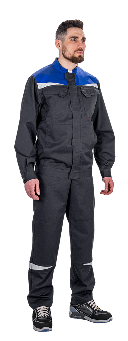 Костюм состоит из куртки и полукомбинезона. В костюме используются деталифигурной формы из световозвращающего материала.