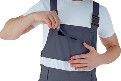 • четыре кармана (на нагруднике – накладной с клапаном с застежкой на ленту-контакт, боковые с наклонным входом, накладной на правой задней половинке)