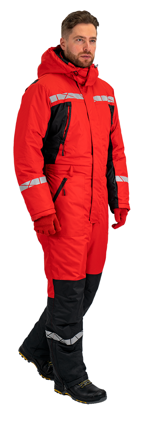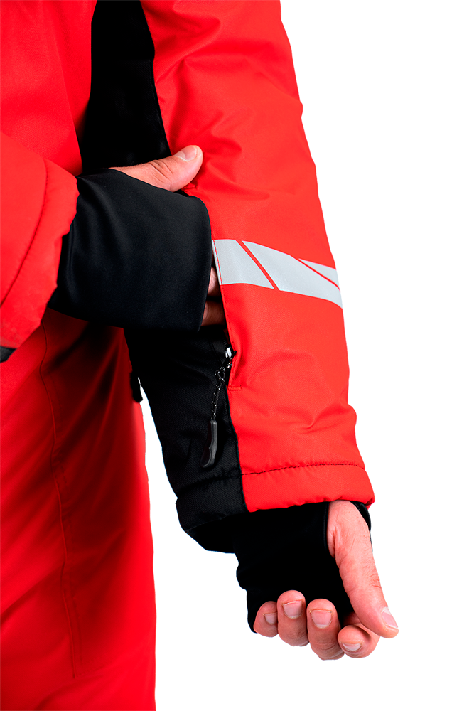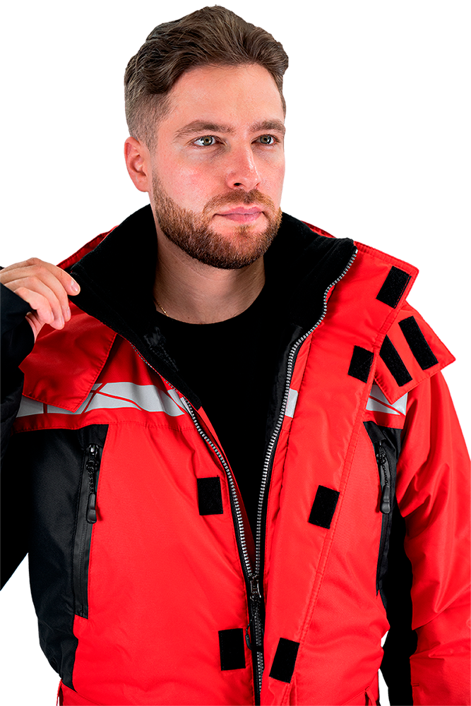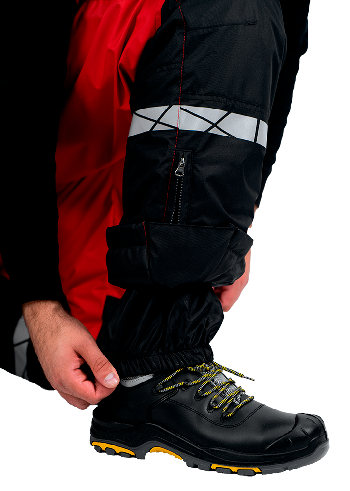 • термоклеевые световозвращающие полосы шириной 30 мм на кокетках полочки и спинки, внизу рукавов, брюк, на центральной части капюшона