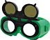 Очки современные, удобные, с высокими эксплуатационными свойствами состоят из мягкого корпуса из ПВХ пластиката, в котором установлен жесткий стеклодержатель с прозрачными пластмассовыми защитными стеклами Plexiglas CE и откидного стеклодержателя с минеральными защитными стеклами-светофильтрами.