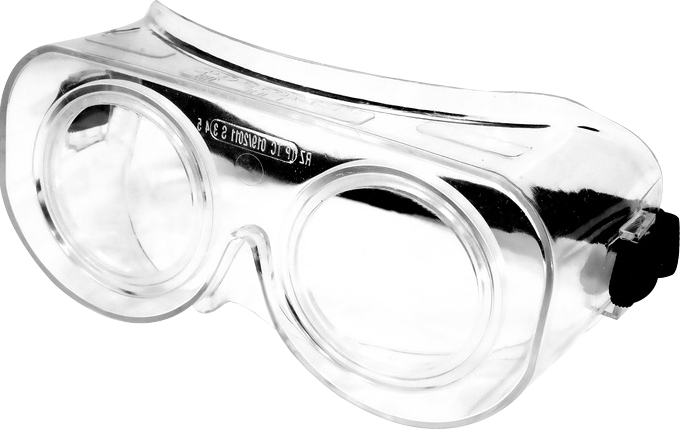 Очки герметичные с минеральными защитными упрочненными стеклами, максимально устойчивыми к абразивному воздействию. Мягкий корпус из ПВХ, регулируемая эластичная наголовная лента выполнена из маслобензостойкой резины.